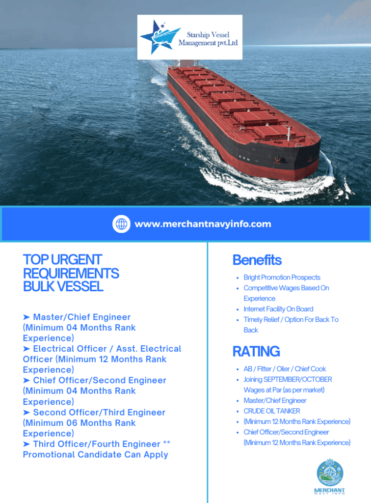 Merchant Navy Info does not provide employment services and does not contact users directly. If you receive a message from someone claiming to represent Merchant Navy Info and offering you a job, please do not respond to the message or provide any personal information.